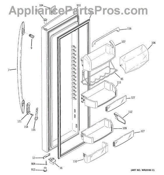 Replace your cracked or broken side-by-side refrigerator door handle. Mounts to door panel with upper and lower fasteners. Sold individually.