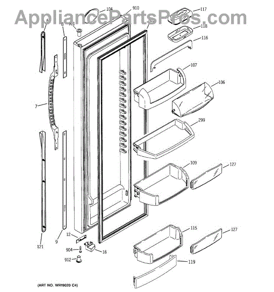 The Door Bin is an OEM part for GE refrigerators. It is a convenient storage compartment located on the interior of the refrigerator door, designed to hold and organize smaller items such as condiments, jars, or beverages.