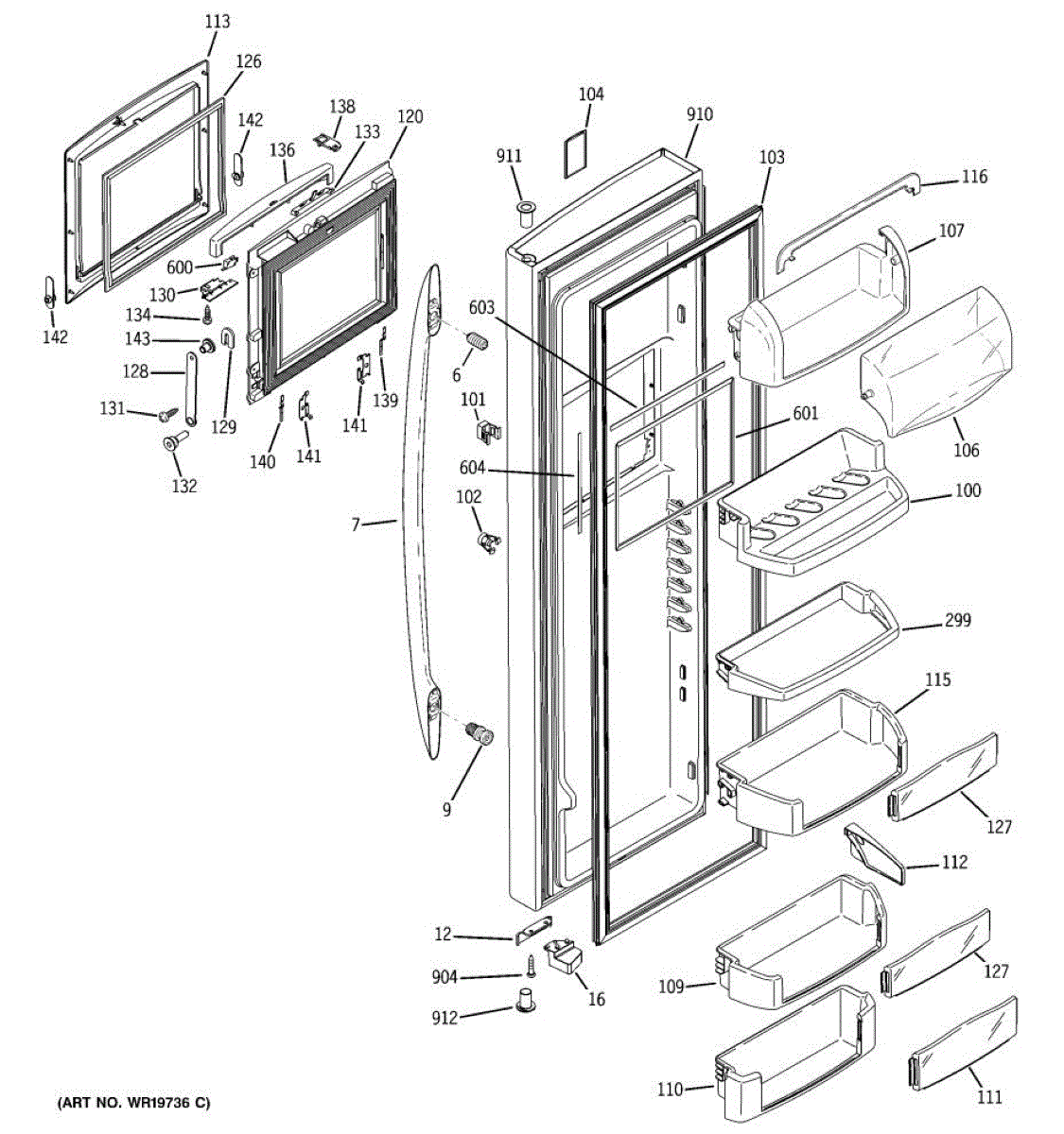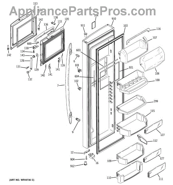The Door Bin is an OEM part for GE refrigerators. It is a convenient storage compartment located on the interior of the refrigerator door, designed to hold and organize smaller items such as condiments, jars, or beverages.