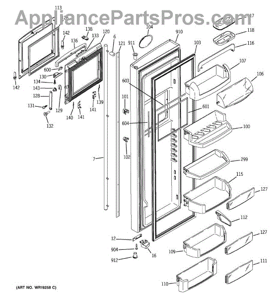 The Door Bin is an OEM part for GE refrigerators. It is a convenient storage compartment located on the interior of the refrigerator door, designed to hold and organize smaller items such as condiments, jars, or beverages.