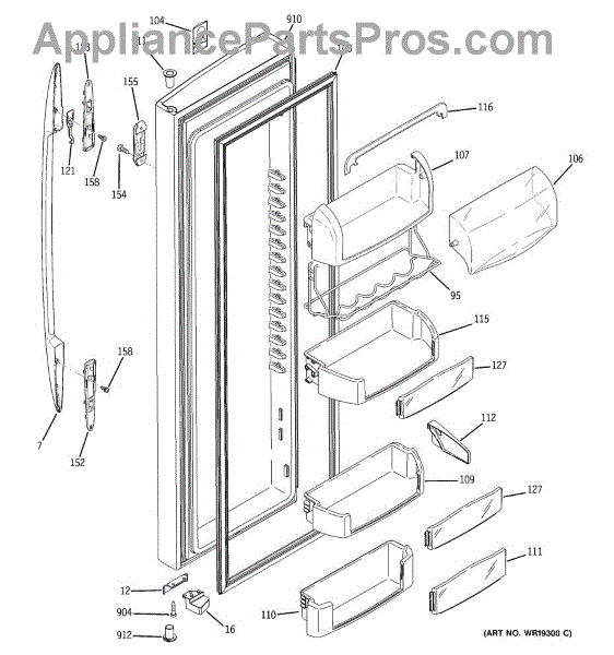 The Door Bin is an OEM part for GE refrigerators. It is a convenient storage compartment located on the interior of the refrigerator door, designed to hold and organize smaller items such as condiments, jars, or beverages.