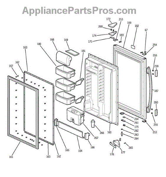 Parts for Ge PDS18LBMBB: Fresh Food Door Parts