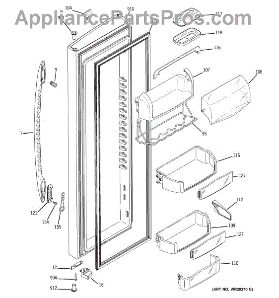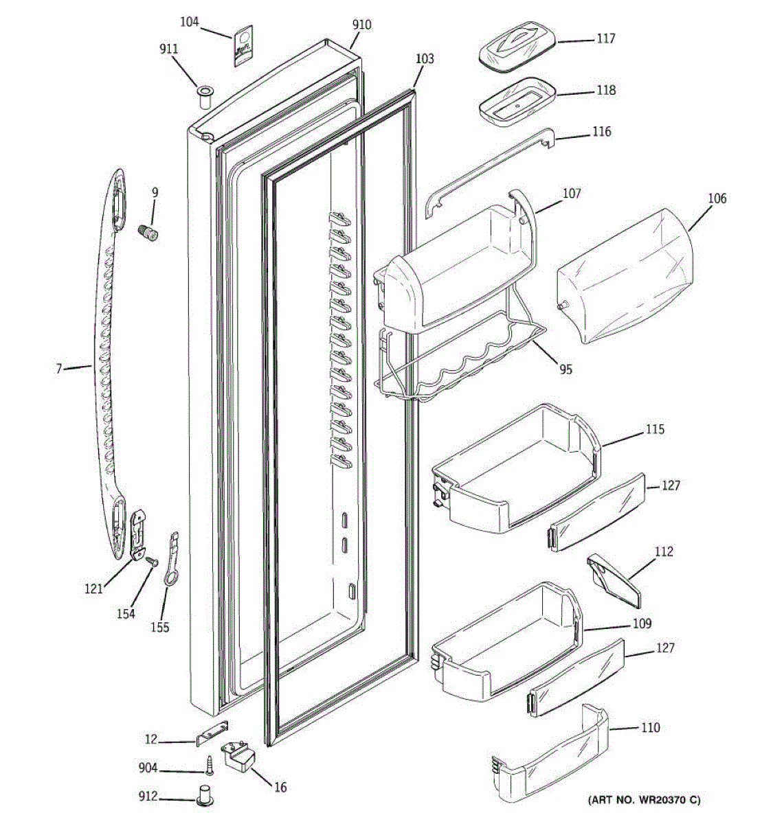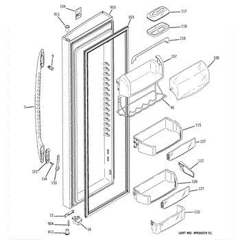 Parts for Ge PHE25MGTFFWW: 02 - Fresh Food Door Parts