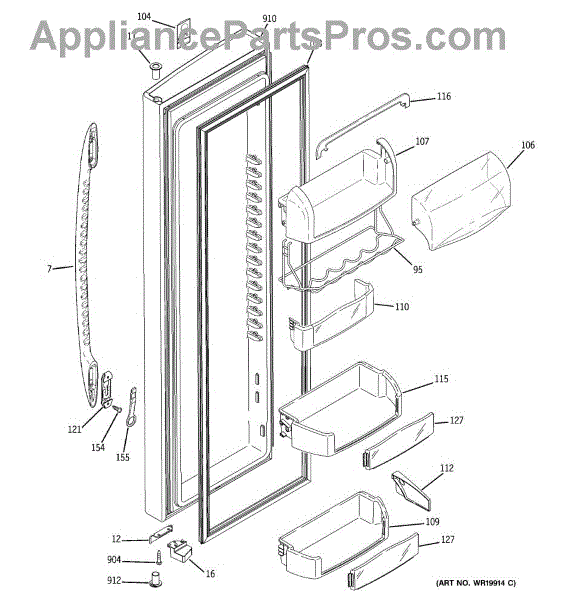 The Fresh Food Door Closure Cam is an OEM replacement part for GE refrigerators. It is a component located inside the fresh food door that works together with the door latch mechanism. The door closure cam has a pivoting arm that engages the latch to securely fasten the door shut when closed. For the same part in white, purchase WR02X10637.