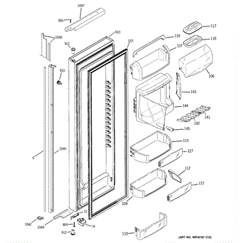 The Fresh Food Door Closure Cam is an OEM replacement part for GE refrigerators. It is a component located inside the fresh food door that works together with the door latch mechanism. The door closure cam has a pivoting arm that engages the latch to securely fasten the door shut when closed. For the same part in white, purchase WR02X10637.