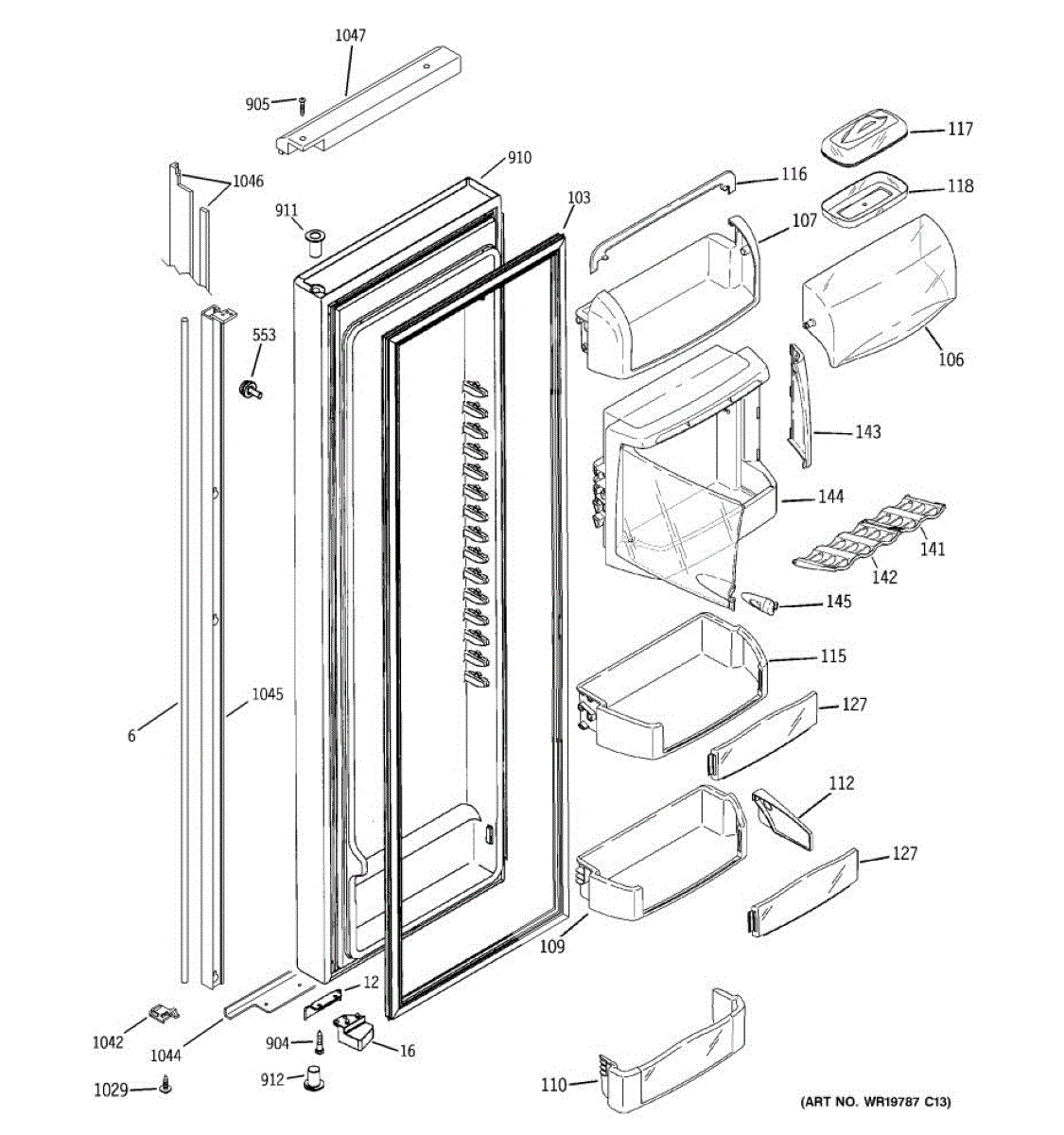 Clear plastic door cover for the dairy compartment in your refrigerator door. Replace if cracked, broken, or missing. Snaps into place, no tools needed.