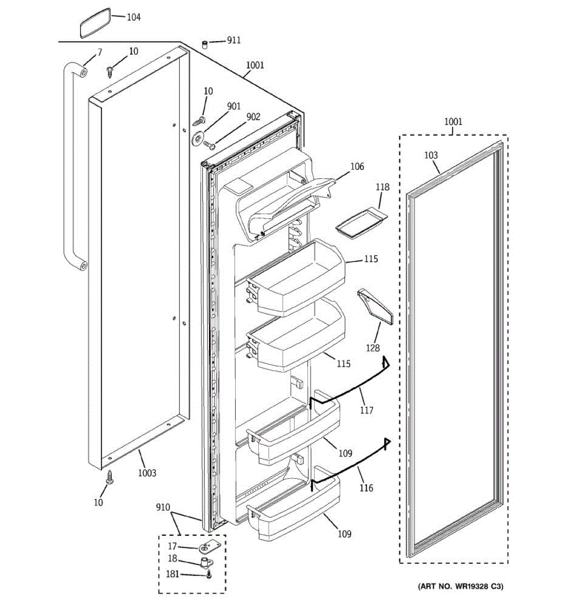 This kit is required when replacing the freezer door. For the freezer door order by model number.