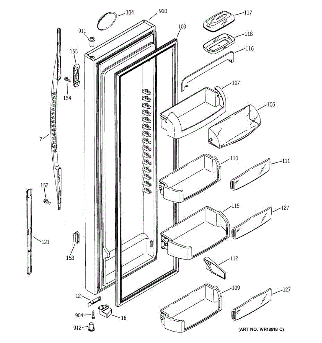 Parts for Ge PSC23MGMEBB: 02 - Fresh Food Door Parts