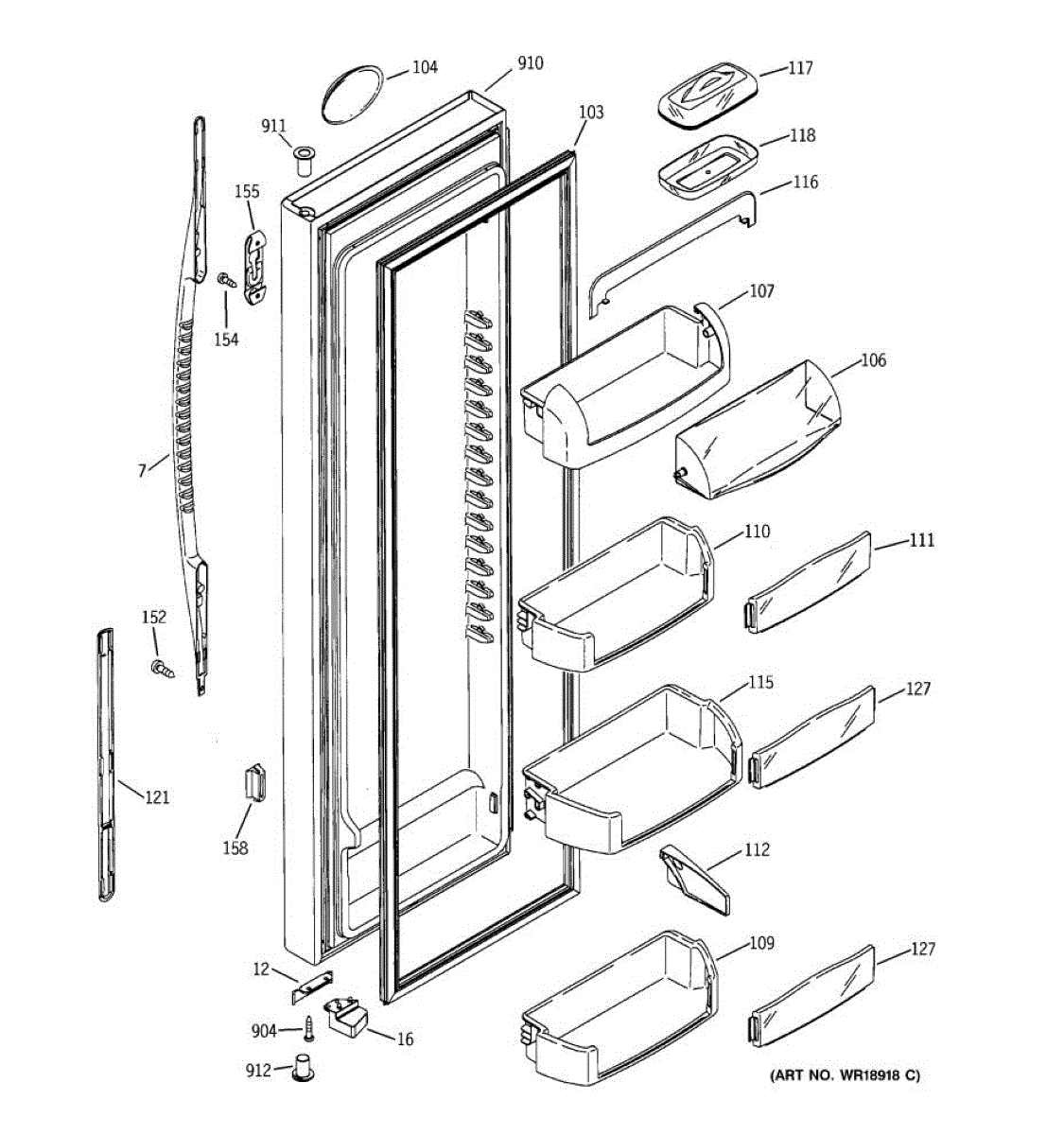 Parts for Ge PSC23MGNABB: 02 - Fresh Food Door Parts