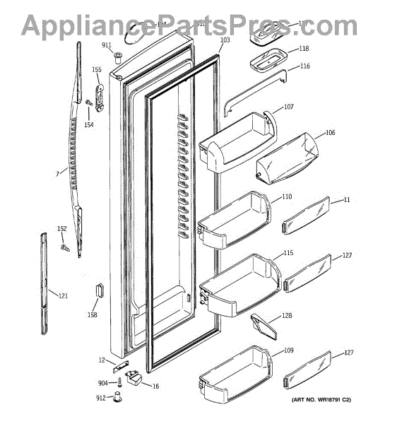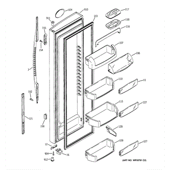 The Door Bin is an OEM part for GE refrigerators. It is a convenient storage compartment located on the interior of the refrigerator door, designed to hold and organize smaller items such as condiments, jars, or beverages.