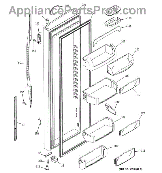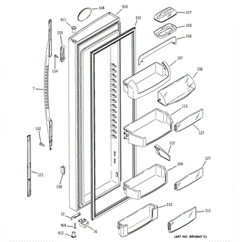 Replacement door bin for side-by-side refrigerators. Mounts inside the door to organize condiments, jars, and beverages. Replace if cracked or broken.