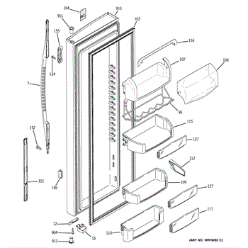 The Door Bin is an OEM part for GE refrigerators. It is a convenient storage compartment located on the interior of the refrigerator door, designed to hold and organize smaller items such as condiments, jars, or beverages.