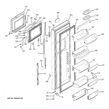 The Door Bin is an OEM part for GE refrigerators. It is a convenient storage compartment located on the interior of the refrigerator door, designed to hold and organize smaller items such as condiments, jars, or beverages.