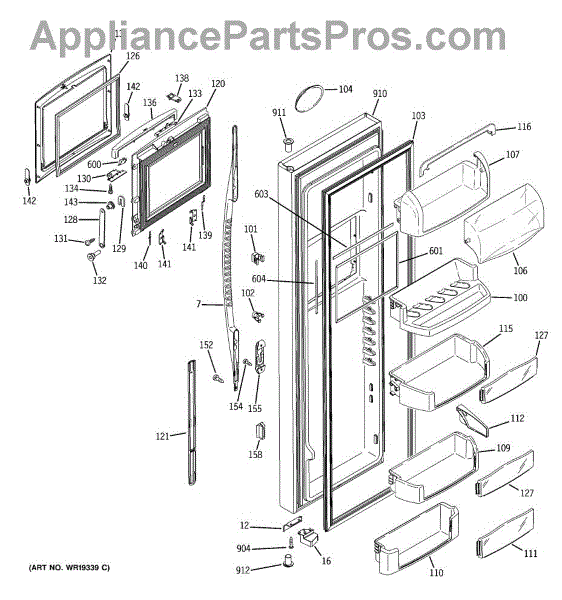 The Door Bin is an OEM part for GE refrigerators. It is a convenient storage compartment located on the interior of the refrigerator door, designed to hold and organize smaller items such as condiments, jars, or beverages.