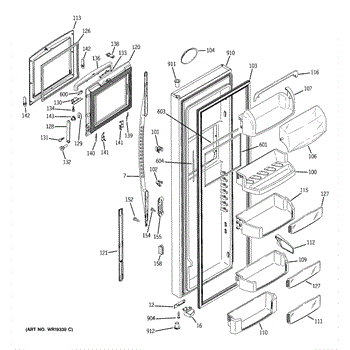 The Door Bin is an OEM part for GE refrigerators. It is a convenient storage compartment located on the interior of the refrigerator door, designed to hold and organize smaller items such as condiments, jars, or beverages.