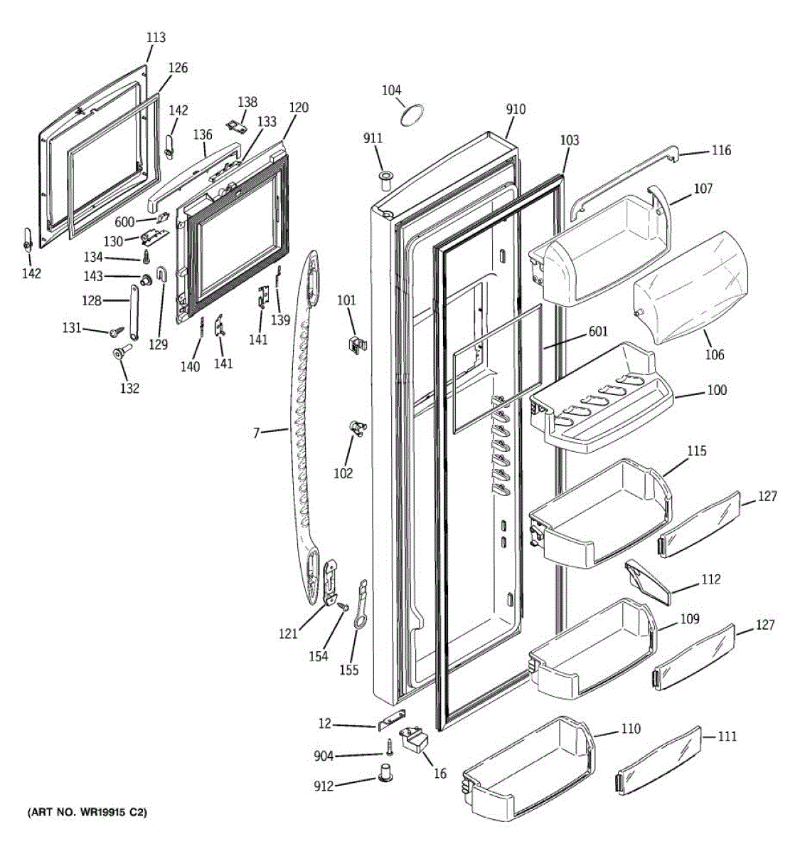 The Door Bin is an OEM part for GE refrigerators. It is a convenient storage compartment located on the interior of the refrigerator door, designed to hold and organize smaller items such as condiments, jars, or beverages.