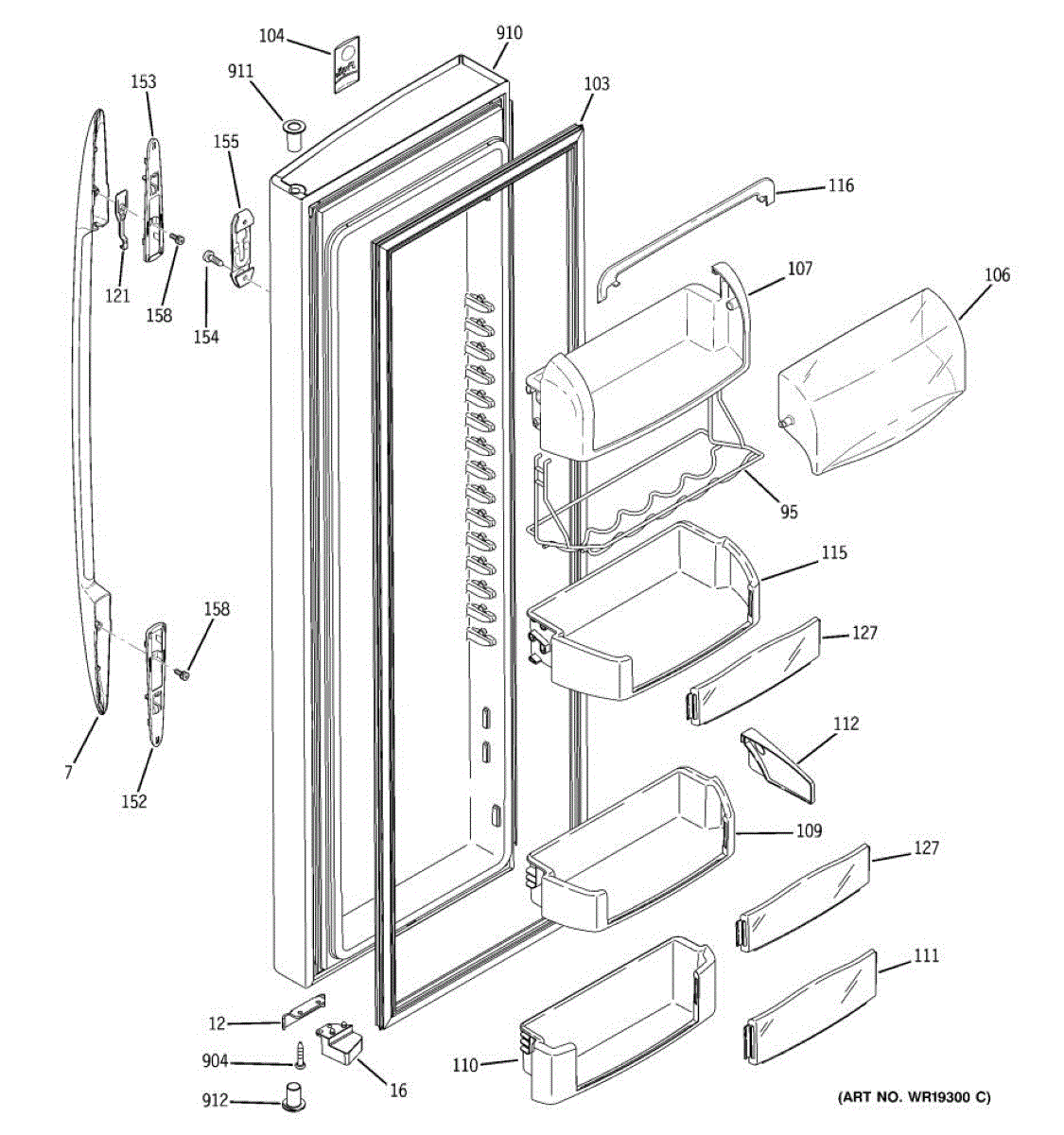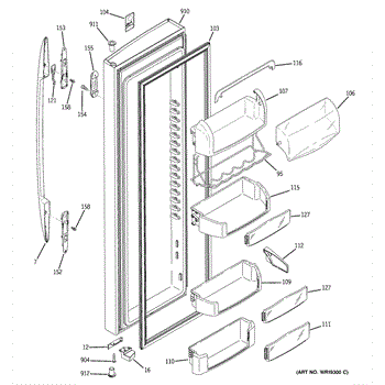 The Door Bin is an OEM part for GE refrigerators. It is a convenient storage compartment located on the interior of the refrigerator door, designed to hold and organize smaller items such as condiments, jars, or beverages.