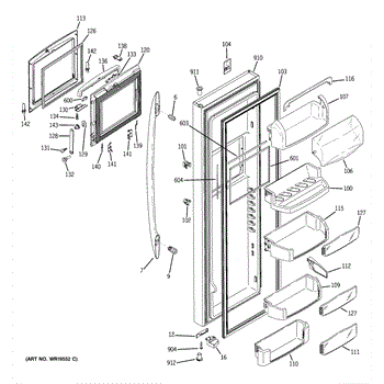 The Door Bin is an OEM part for GE refrigerators. It is a convenient storage compartment located on the interior of the refrigerator door, designed to hold and organize smaller items such as condiments, jars, or beverages.