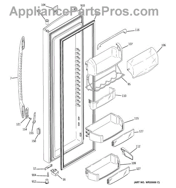 The Fresh Food Door Closure Cam is an OEM replacement part for GE refrigerators. It is a component located inside the fresh food door that works together with the door latch mechanism. The door closure cam has a pivoting arm that engages the latch to securely fasten the door shut when closed. For the same part in white, purchase WR02X10637.