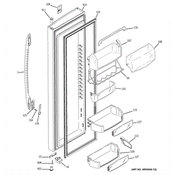 The Fresh Food Door Closure Cam is an OEM replacement part for GE refrigerators. It is a component located inside the fresh food door that works together with the door latch mechanism. The door closure cam has a pivoting arm that engages the latch to securely fasten the door shut when closed. For the same part in white, purchase WR02X10637.