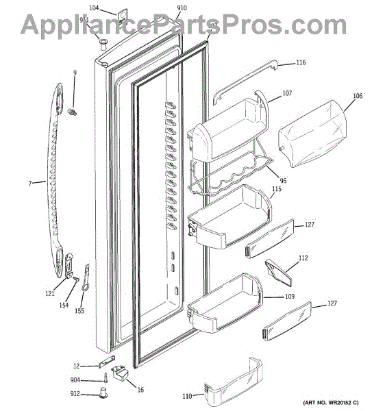 The Fresh Food Door Closure Cam is an OEM replacement part for GE refrigerators. It is a component located inside the fresh food door that works together with the door latch mechanism. The door closure cam has a pivoting arm that engages the latch to securely fasten the door shut when closed. For the same part in white, purchase WR02X10637.