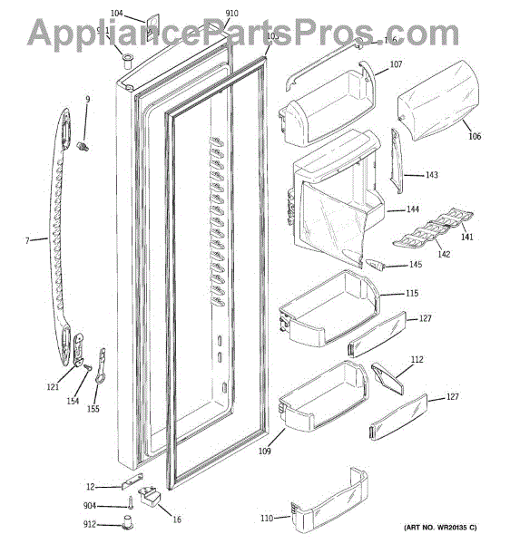 The Refrigerator Door Gasket is an OEM part for GE refrigerators. This gasket forms a seal around the refrigerator door, preventing warm air from entering and cool air from escaping, thereby ensuring optimal cooling efficiency.