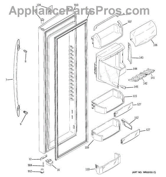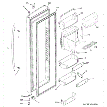 The Fresh Food Door Closure Cam is an OEM replacement part for GE refrigerators. It is a component located inside the fresh food door that works together with the door latch mechanism. The door closure cam has a pivoting arm that engages the latch to securely fasten the door shut when closed. For the same part in white, purchase WR02X10637.
