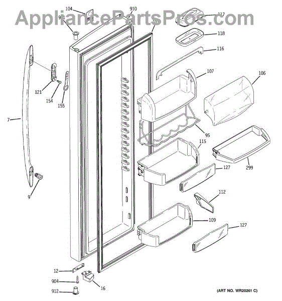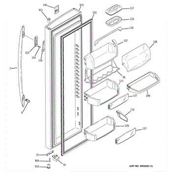 The Door Bin is an OEM part for GE refrigerators. It is a convenient storage compartment located on the interior of the refrigerator door, designed to hold and organize smaller items such as condiments, jars, or beverages.