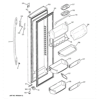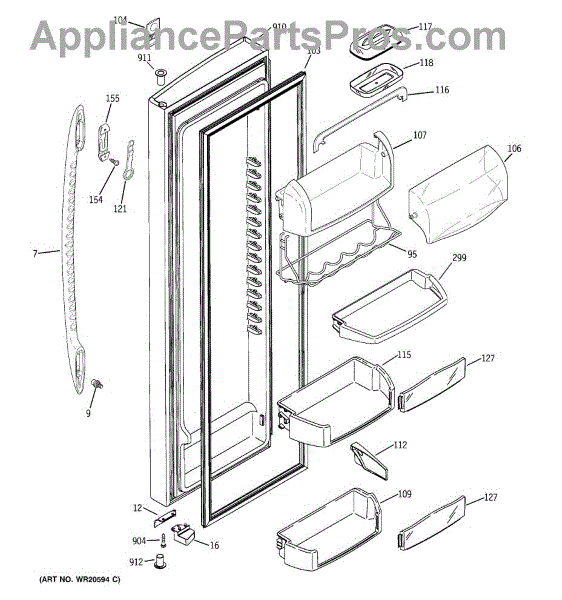 The Door Bin is an OEM part for GE refrigerators. It is a convenient storage compartment located on the interior of the refrigerator door, designed to hold and organize smaller items such as condiments, jars, or beverages.