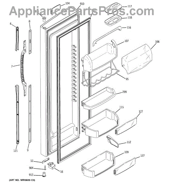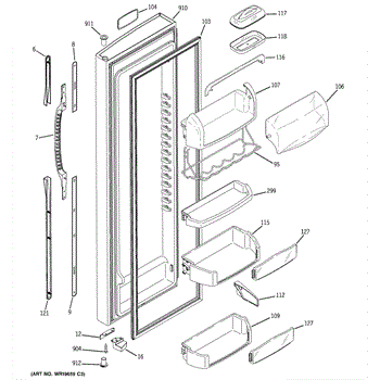 The Door Bin is an OEM part for GE refrigerators. It is a convenient storage compartment located on the interior of the refrigerator door, designed to hold and organize smaller items such as condiments, jars, or beverages.
