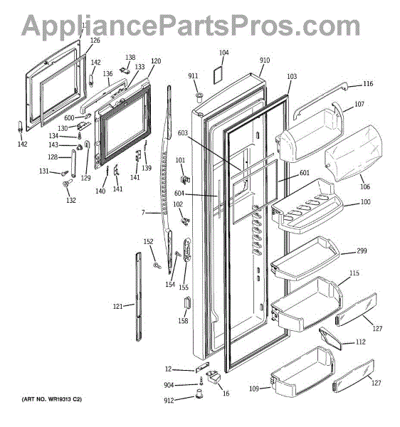 The Door Bin is an OEM part for GE refrigerators. It is a convenient storage compartment located on the interior of the refrigerator door, designed to hold and organize smaller items such as condiments, jars, or beverages.