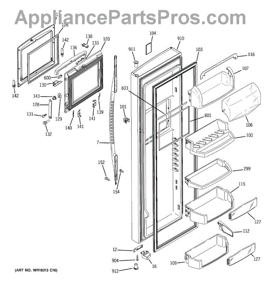 The Door Bin is an OEM part for GE refrigerators. It is a convenient storage compartment located on the interior of the refrigerator door, designed to hold and organize smaller items such as condiments, jars, or beverages.