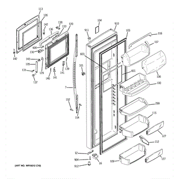 The Door Bin is an OEM part for GE refrigerators. It is a convenient storage compartment located on the interior of the refrigerator door, designed to hold and organize smaller items such as condiments, jars, or beverages.