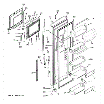 The Door Bin is an OEM part for GE refrigerators. It is a convenient storage compartment located on the interior of the refrigerator door, designed to hold and organize smaller items such as condiments, jars, or beverages.