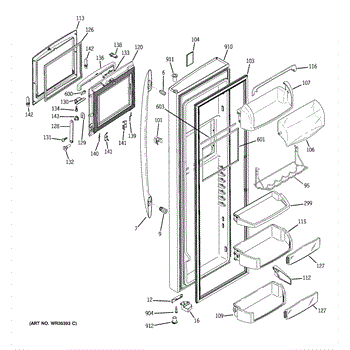 The Door Bin is an OEM part for GE refrigerators. It is a convenient storage compartment located on the interior of the refrigerator door, designed to hold and organize smaller items such as condiments, jars, or beverages.
