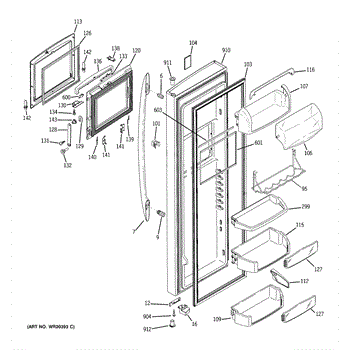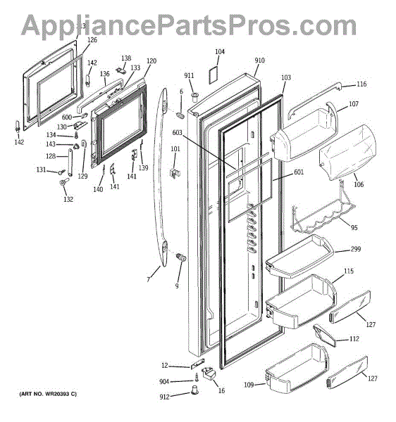 The Door Bin is an OEM part for GE refrigerators. It is a convenient storage compartment located on the interior of the refrigerator door, designed to hold and organize smaller items such as condiments, jars, or beverages.