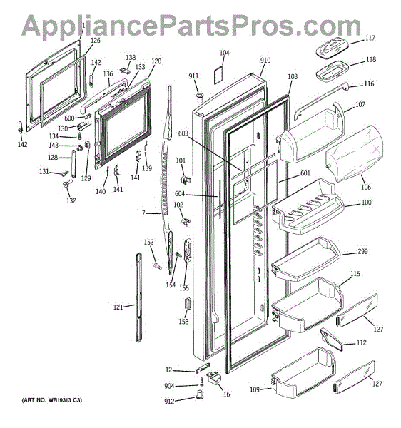 The Door Bin is an OEM part for GE refrigerators. It is a convenient storage compartment located on the interior of the refrigerator door, designed to hold and organize smaller items such as condiments, jars, or beverages.