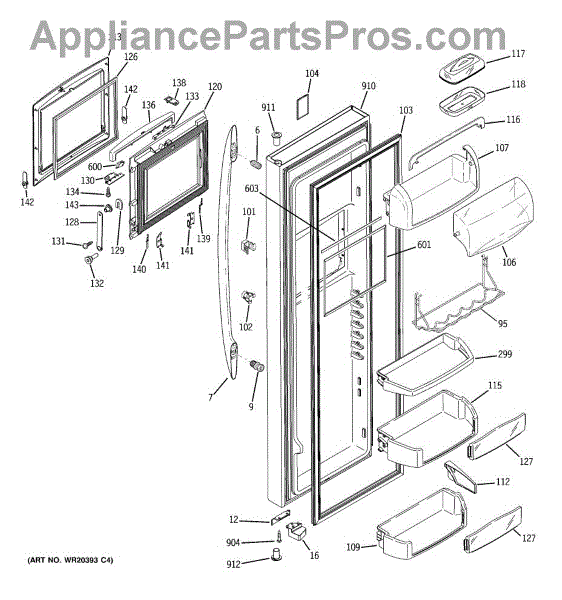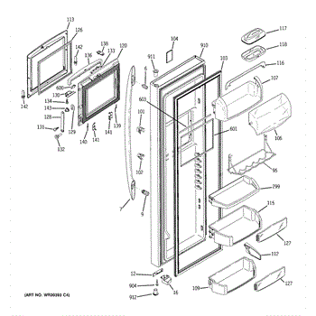 The Door Bin is an OEM part for GE refrigerators. It is a convenient storage compartment located on the interior of the refrigerator door, designed to hold and organize smaller items such as condiments, jars, or beverages.
