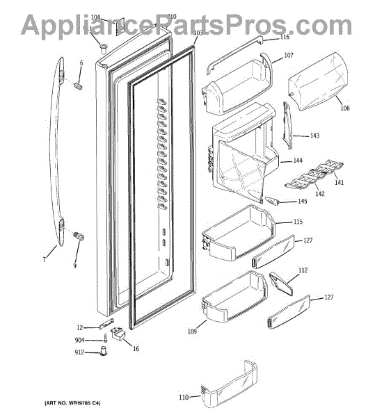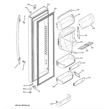 The Door Bin is an OEM part for GE refrigerators. It is a convenient storage compartment located on the interior of the refrigerator door, designed to hold and organize smaller items such as condiments, jars, or beverages.