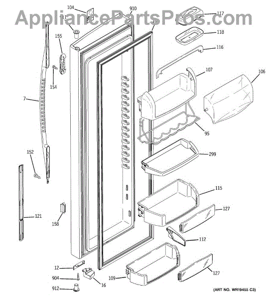 The Door Bin is an OEM part for GE refrigerators. It is a convenient storage compartment located on the interior of the refrigerator door, designed to hold and organize smaller items such as condiments, jars, or beverages.