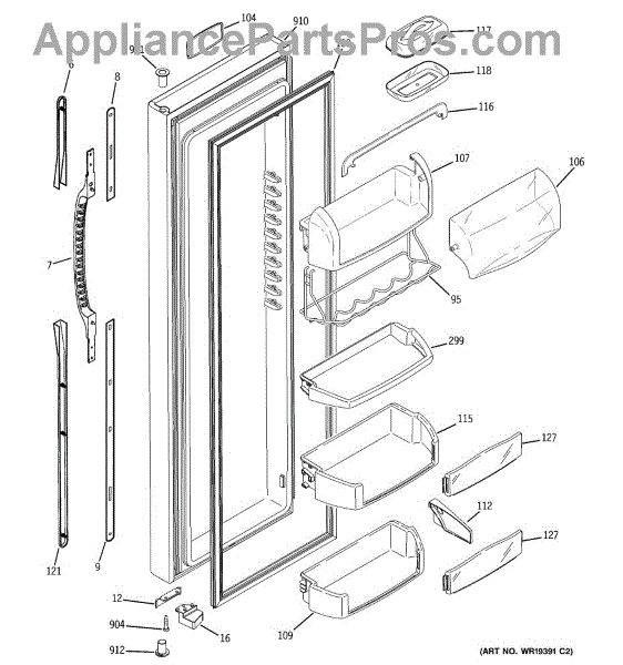 The Door Bin is an OEM part for GE refrigerators. It is a convenient storage compartment located on the interior of the refrigerator door, designed to hold and organize smaller items such as condiments, jars, or beverages.
