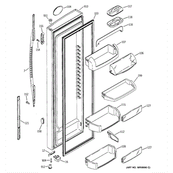 The Door Bin is an OEM part for GE refrigerators. It is a convenient storage compartment located on the interior of the refrigerator door, designed to hold and organize smaller items such as condiments, jars, or beverages.