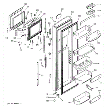 Replacement door bin for side-by-side refrigerators. Mounts inside the door to organize condiments, jars, and beverages. Replace if cracked or broken.