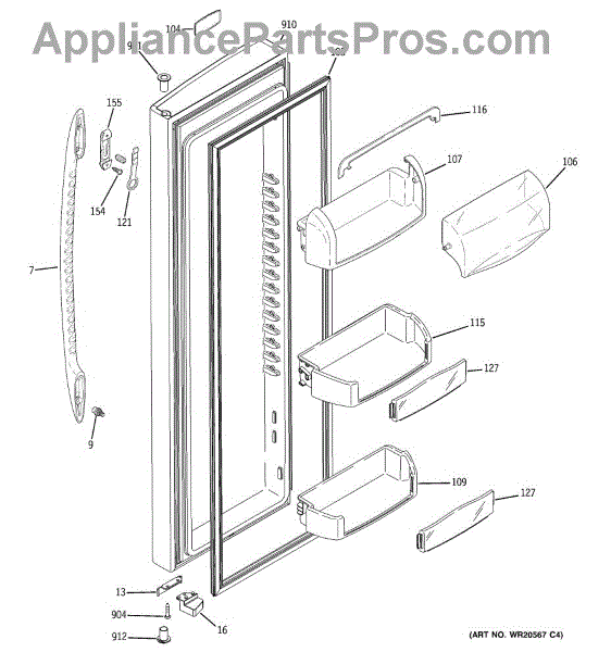 Replace your cracked or broken side-by-side refrigerator door handle. Mounts to door panel with upper and lower fasteners. Sold individually.