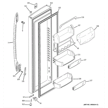 Replacement door bin for side-by-side refrigerators. Mounts inside the door to organize condiments, jars, and beverages. Replace if cracked or broken.
