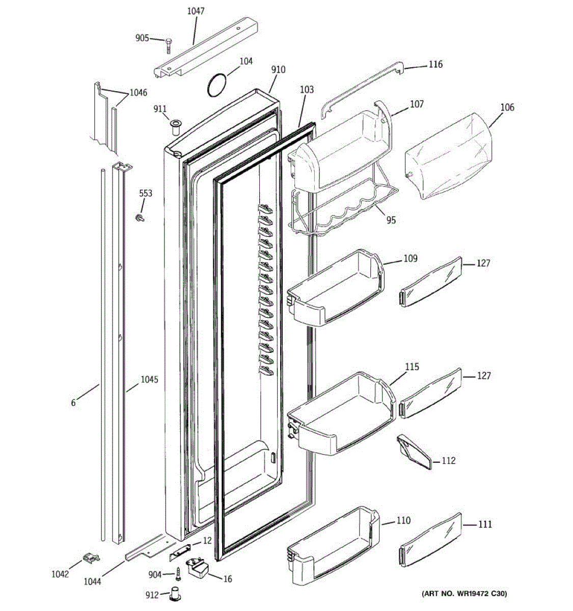 Clear plastic door cover for the dairy compartment in your refrigerator door. Replace if cracked, broken, or missing. Snaps into place, no tools needed.