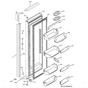 Replacement door bin for side-by-side refrigerators. Mounts inside the door to organize condiments, jars, and beverages. Replace if cracked or broken.