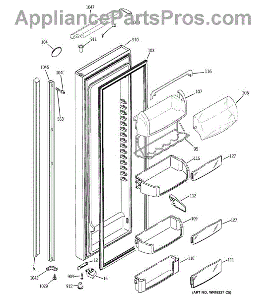 The Door Bin is an OEM part for GE refrigerators. It is a convenient storage compartment located on the interior of the refrigerator door, designed to hold and organize smaller items such as condiments, jars, or beverages.