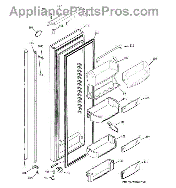 The Door Bin is an OEM part for GE refrigerators. It is a convenient storage compartment located on the interior of the refrigerator door, designed to hold and organize smaller items such as condiments, jars, or beverages.