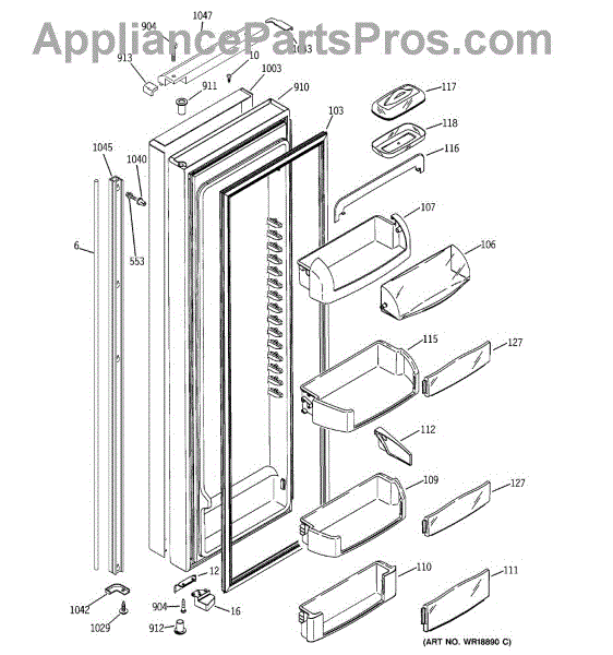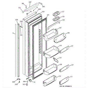 Replacement door bin for side-by-side refrigerators. Mounts inside the door to organize condiments, jars, and beverages. Replace if cracked or broken.
